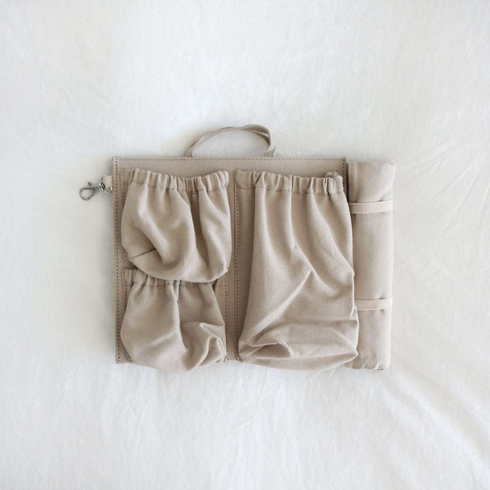 Compact yet powerful organizer for medium size bags, and backpacks. Our mini insert features an insulated pocket, key clasp, and roll-out mat. Crafted from durable and wipeable nylon, this insert includes 6 roomy pockets bringing order to chaos. Elevate organization with style. Style also available in cotton canvas.