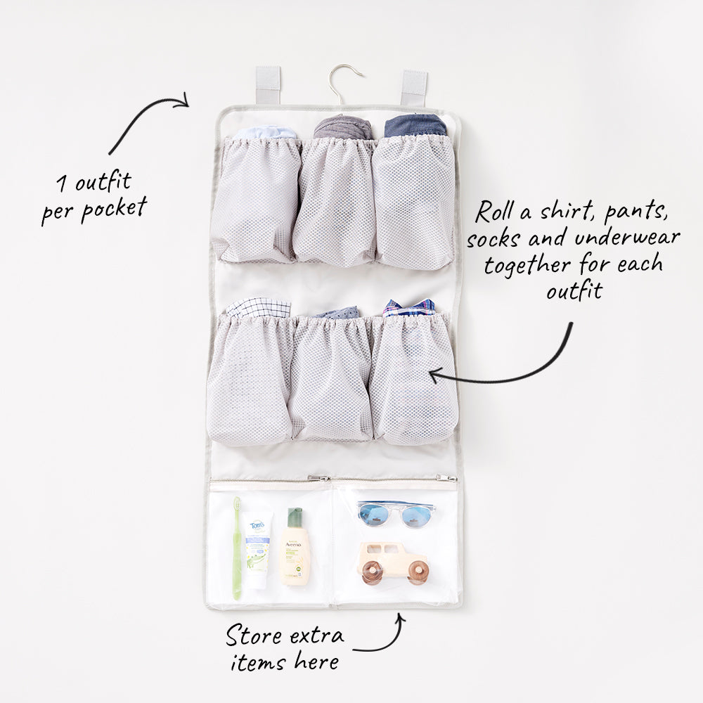 Make every trip a little less chaotic with ToteSavvy Travel. Separate pockets fit individual outfits, making it quick and easy for you or your child to grab what they need without disturbing anything else.